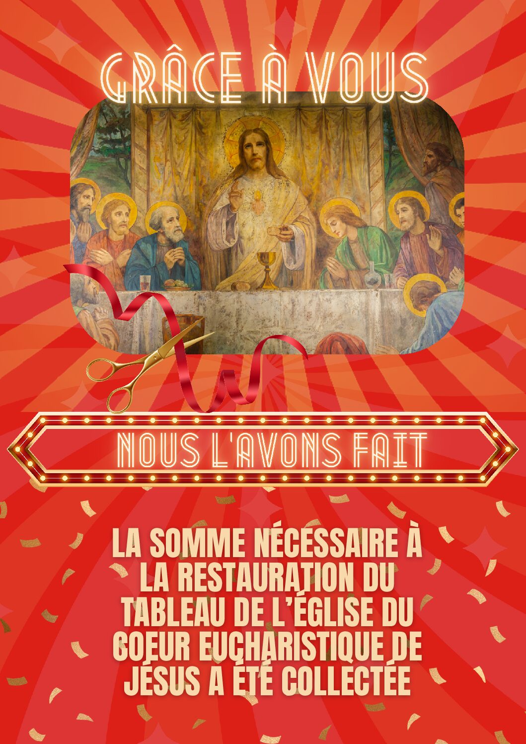 Le nom de Cœur Eucharistique de Jésus prend ici tout son sens, thème de cette fresque qui l’illustre dans notre église.